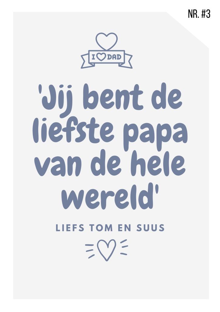 Laat weten hoe blij je bent met jouw mama, papa, oma of opa! Geef jouw voorkeur en tekst door. Je ontvangt de unieke poster per post!